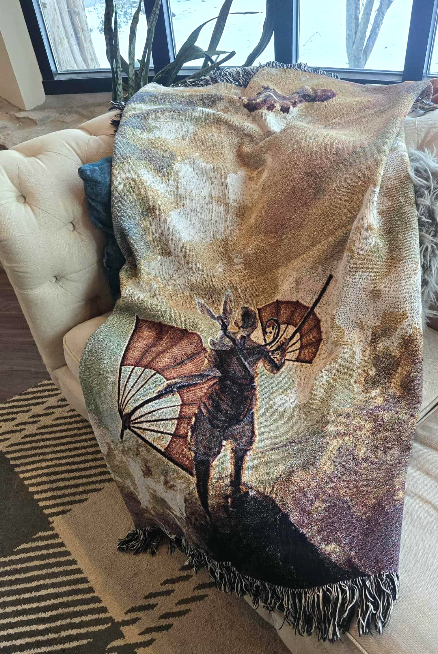 Enjoy the perfect blanket burrito or a unique wall hanging! Premium natural cotton weaving that is lightweight and soft to the touch, beautifully textured and wonderfully cozy. Made from 100% natural cotton thread, this woven artwork makes for a unique statement piece whether it's on your couch or wall.